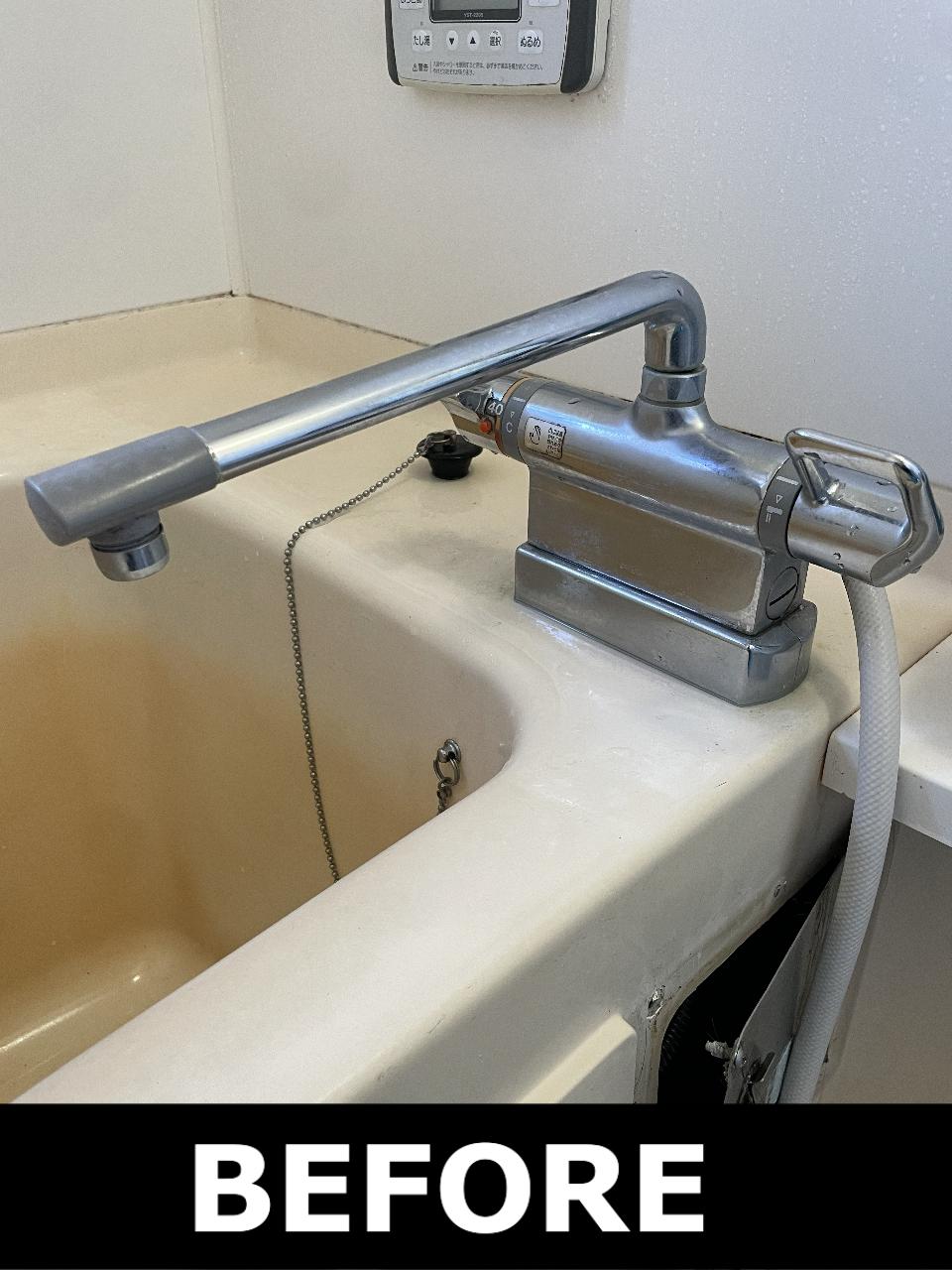 デッキ水栓の交換 施工前 TMG46C1X (TOTO) 施工後 BF-WM646TSG(リクシル) |