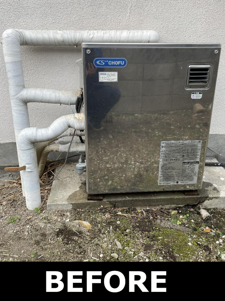 長府 石油給湯器(エコフィール)への交換 施工前 KIBF-4732DSA 施工後 EHKF-4771DA |