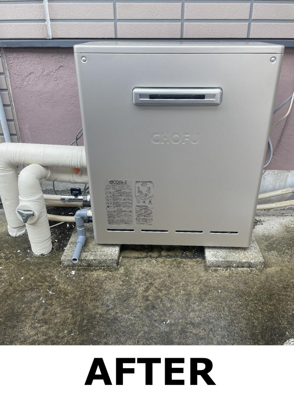 石油給湯器からガス給湯器への交換 施工前 ノーリツ OTQ-4701Y 施工後 長府 GFK-S2052WA |
